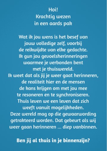 Het was heel fijn om daar te zijn! Gesprekken op die plek lopen zo makkelijk. Haast zonder woorden weet je elkaar te vinden in dat veld van verbondenheid. Mooi om in de gesprekken ook naar voren te brengen hoe we als vanzelf invloed hebben op de wereld om ons heen door het vanuit ons eigen kwantum bewustzijnsveld waar te nemen.